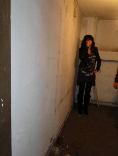 Helen by this same wall in one of the attic rooms Oct 28th - not happy - but no sign of the dark shape & we couldn't recreate it |